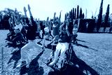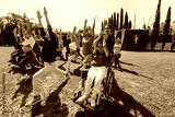 Large Group of Latin sporty multi age people stretching in training class next to mexican woman in wheelchair outdoors in a public park in Mexico Latin America. Diverse group in inclusion concept.