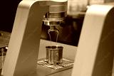 Espresso Machine Extracting Fresh Coffee into Portafilter