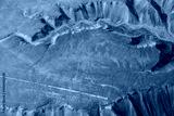 Aerial view of Nazca Lines - Hummingbird geoglyph, Peru.