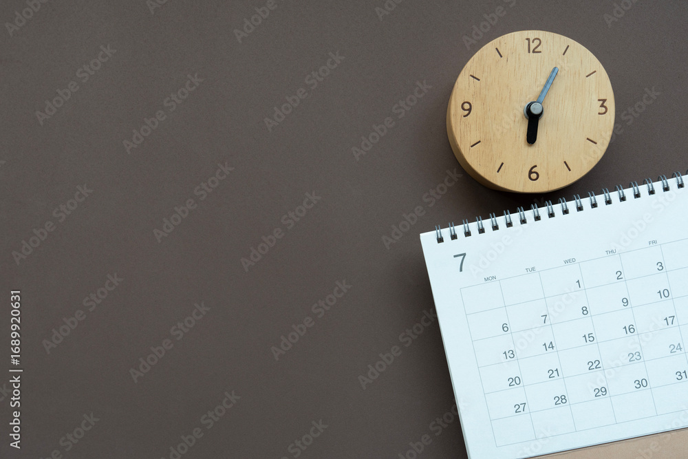 close up of calendar on the brown table background, planning for business meeting or travel planning concept