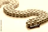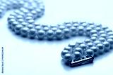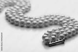 Three-strand necklace made of natural pearls, metal clasp. Mother-of-pearl beads on a white background, jewelry.
