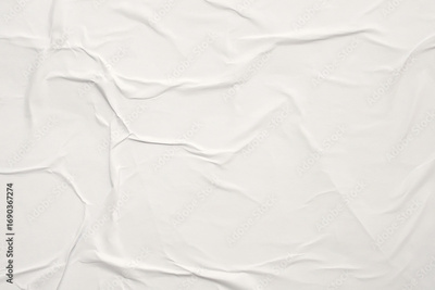 white crumpled and creased glued wrinkled paper poster texture background