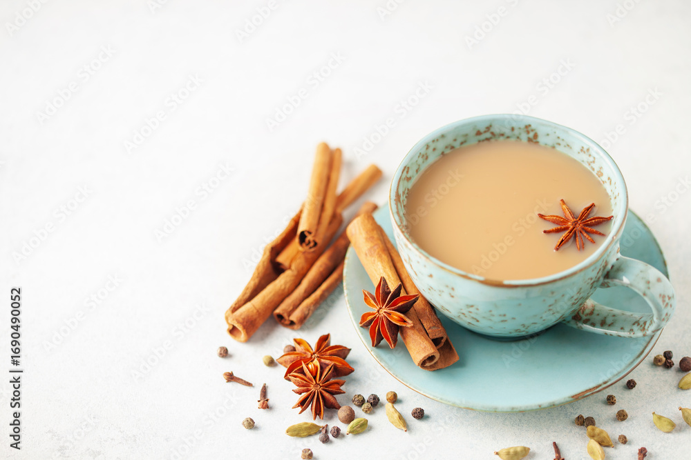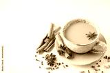 Traditional middle eastern beverage, indian drink masala tea or arabian karak chai. Closeup
