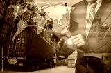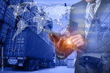 Double exposure Business Logistics concept, map global partner connection of Container Cargo freight ship for Logistic Import Export background for Concept of fast or instant shipping, Online goods or