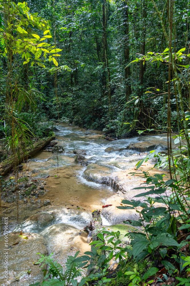 Small river and waterfall in Tentena rainforest, Sulawesi, Indonesia