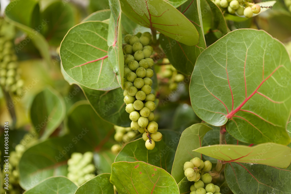 Fruit of Coccoloba uvifera seagrape, natural macro floral background