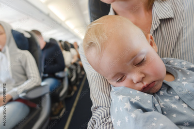 Mother with baby in plane