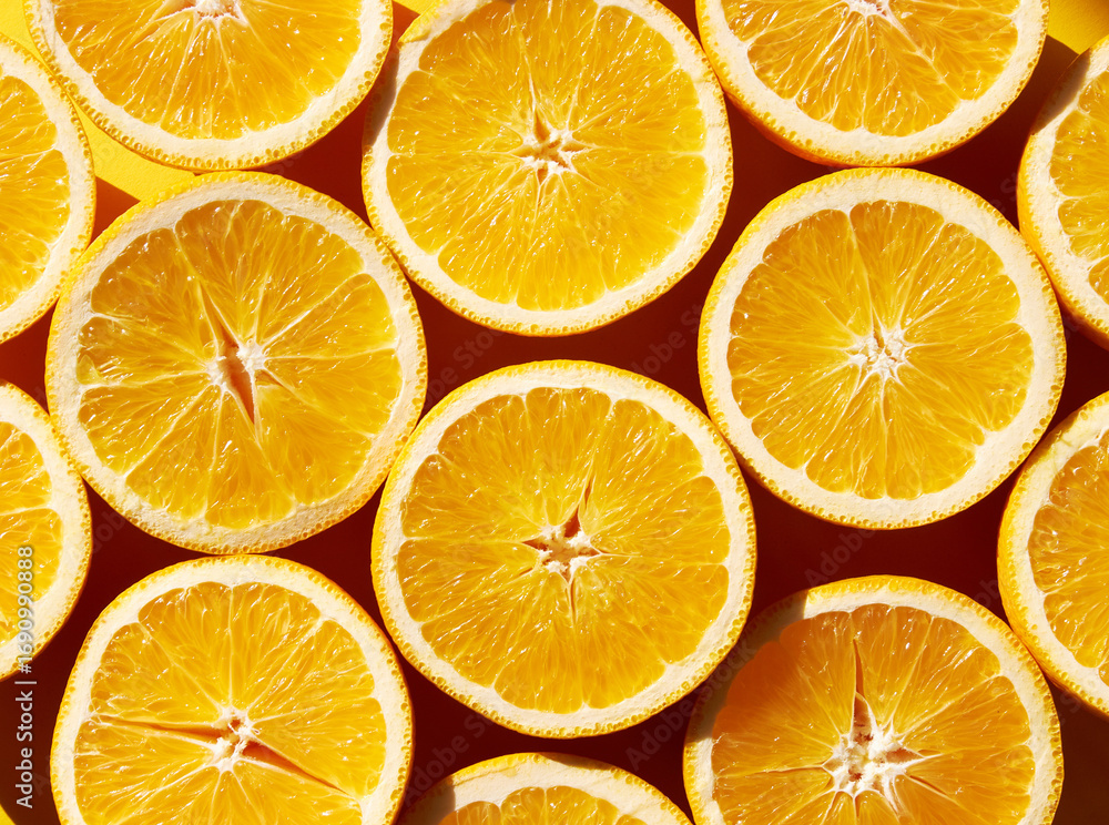 Orange fruits on a orange back