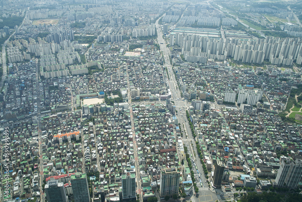 Aerial view of downtown Seoul on a sunny day. Seoul, South Korea