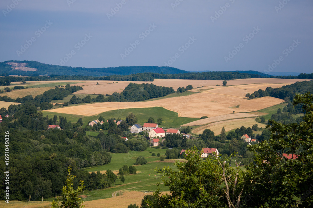 View from Czartowska Skała (463 m above sea level), one of the most characteristic basalt hills in the Kaczawskie Foothills in Poland.