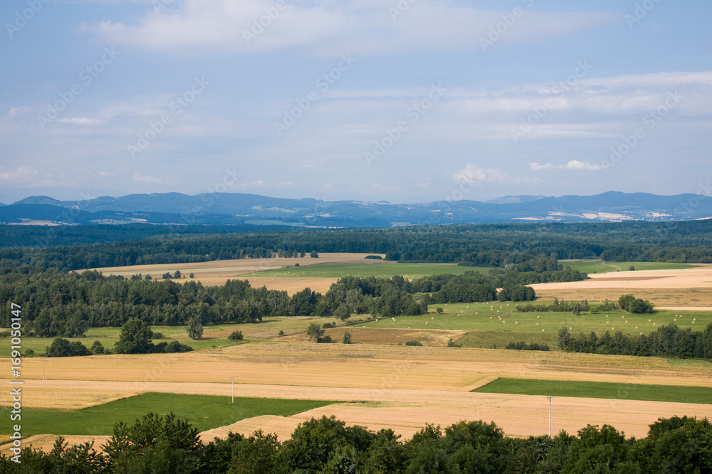 View from Czartowska Skała (463 m above sea level), one of the most characteristic basalt hills in the Kaczawskie Foothills in Poland.