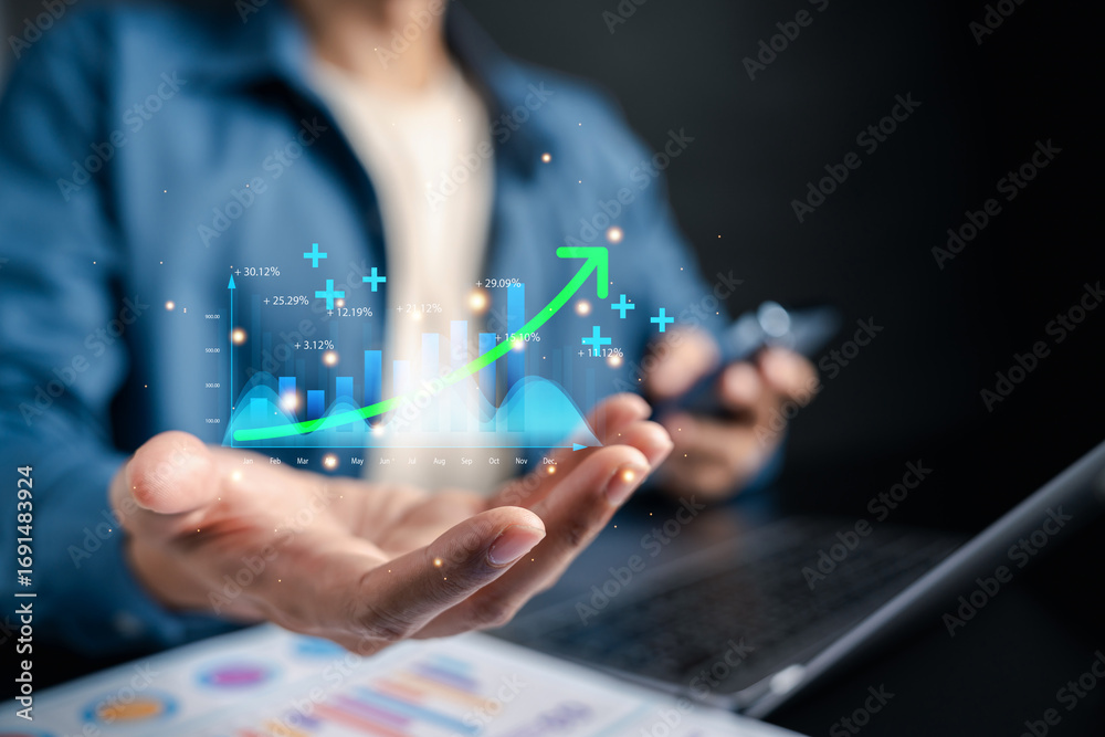 Financial growth increasing chart, performance data visualization, business success, investment return, profit analytics, and economic progress.