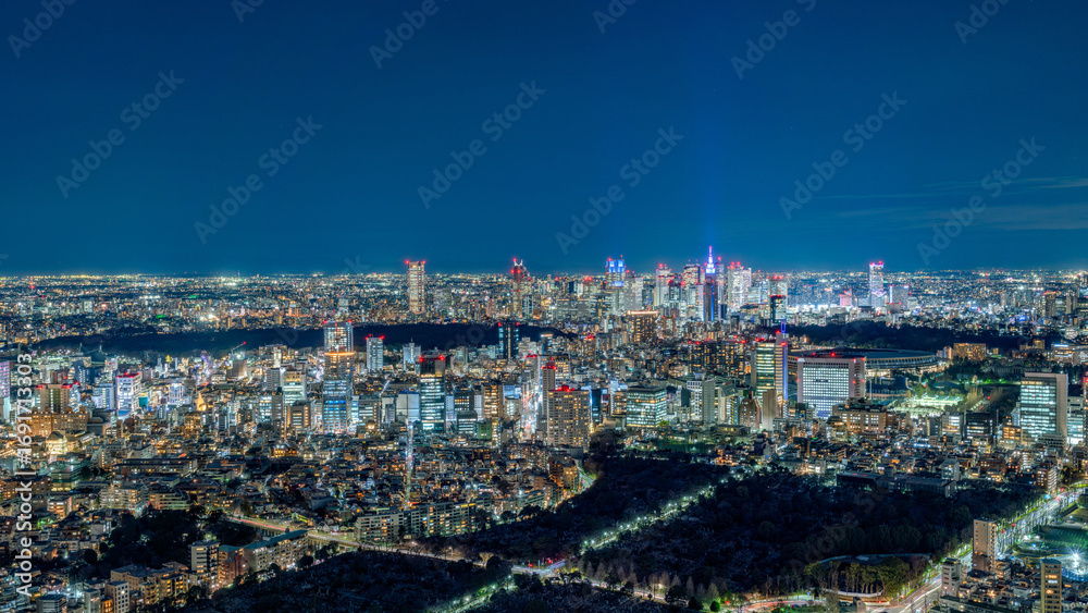 Night cityscape of Tokyo Shinjuku area with high rise buildings at night
