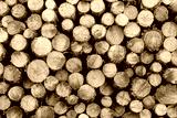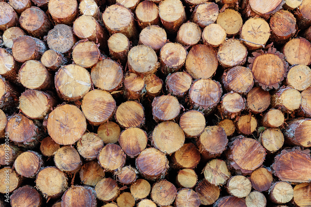 Logs of Scots pine, cut and stacked. Pinus sylvestris. Pine forest in Camposagrado, León, Spain.