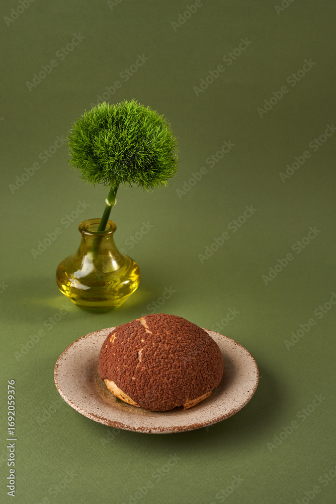 choux cream or Choux puff on a plet ove green background. Japanese Shu Cream