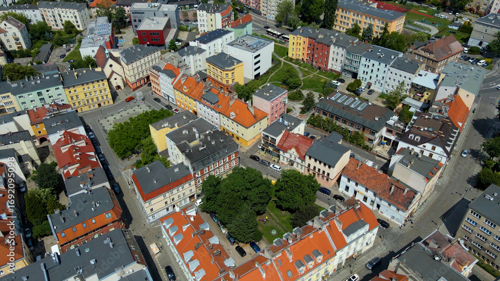 city architecture europe drone flyover old town Opole Poland