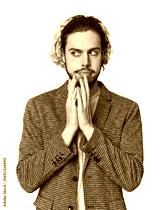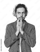 Young businessman in casual blazer making up plan in mind, setting up an idea.