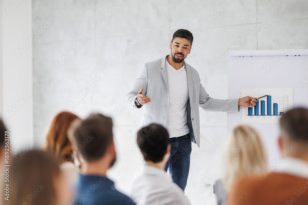 Professional presentation on business growth trends in a modern conference room setting