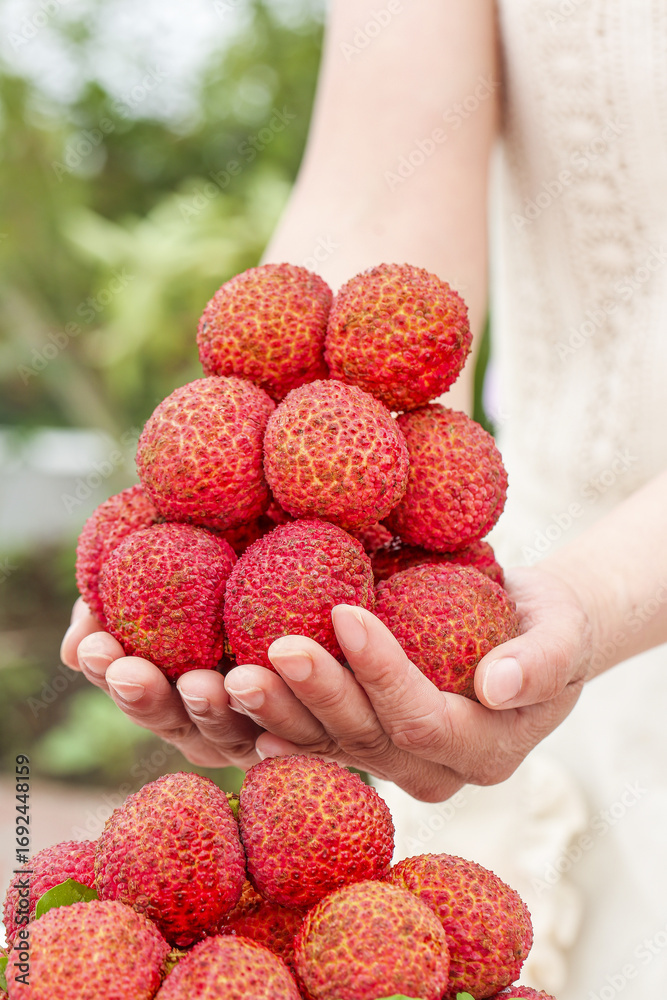 Fresh Lychee Fruits from Hainan Guangxi China Held in Hands Sweet Tropical Exotic Asian Delicacy