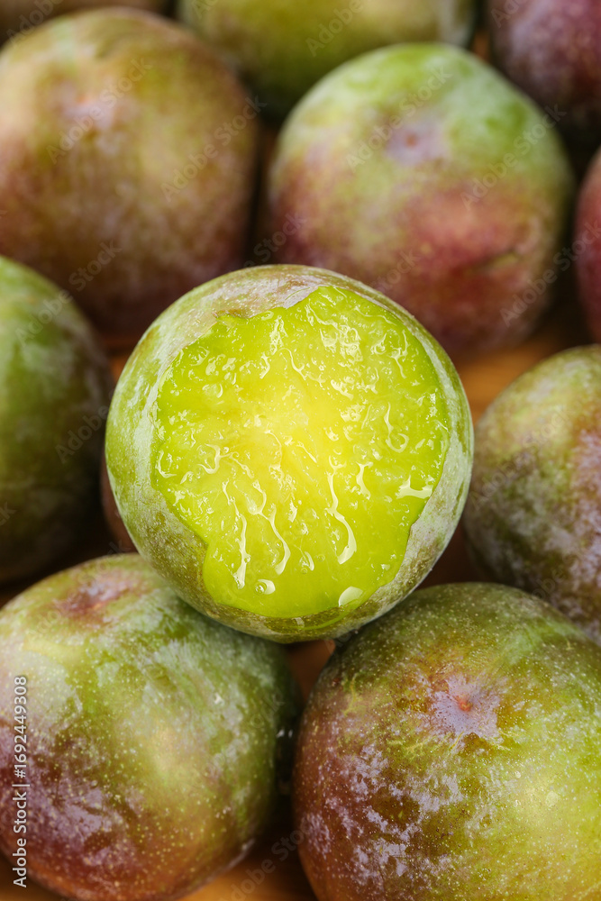 Fresh Sweet Plums with Juicy Green Flesh Showcase - Crisp Organic Stone Fruit