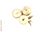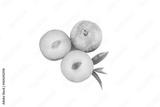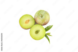 Fresh Green Plums Cut in Half Showing Flesh and Pits Isolated on White Background
