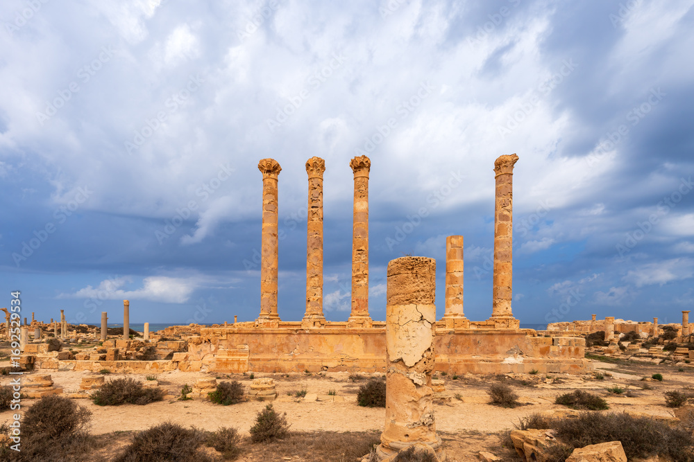 Antonine Temple of Sabratha, Phoenician and Roman city in Northern Libya, a world heritage site