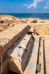 Public toilet in Sabratha, Phoenician and Roman city in Northern Libya, a world heritage site