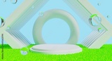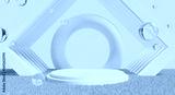 retro-future y2k 2000s frutiger aero aqua web 2.0 gloss with stage podium for product display showcase, 3d illustration rendering abstract background, technology and nature concept