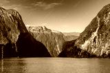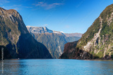 Tourist boat cruising through Milford Sound in South Island, New Zealand
