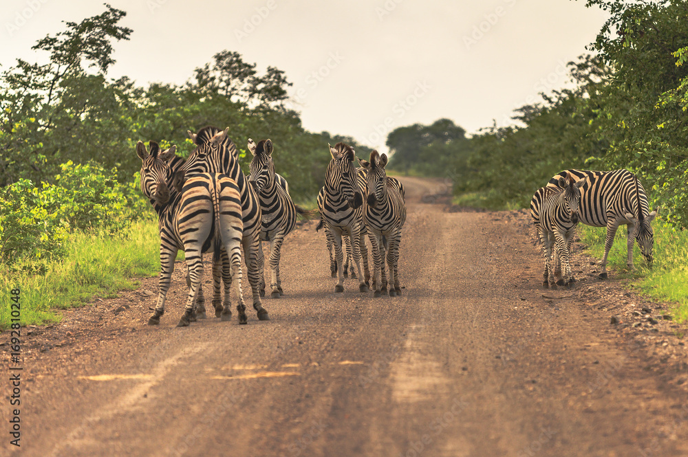 Plain Zebras (Equus Quagga) in the african savanna of the Etosha National Park in Namibia