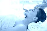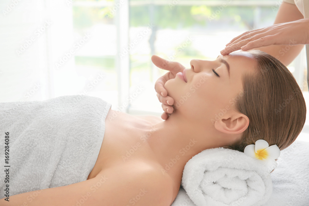 Young woman enjoying of facial massage in spa salon