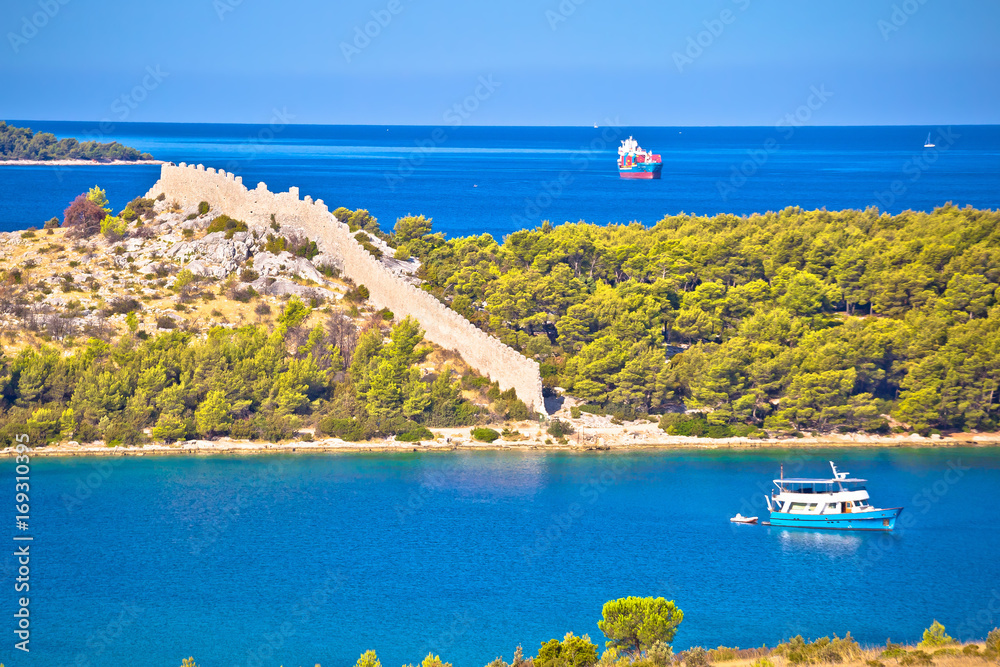 Ancient wall of Ostrica in Grabastica bay view