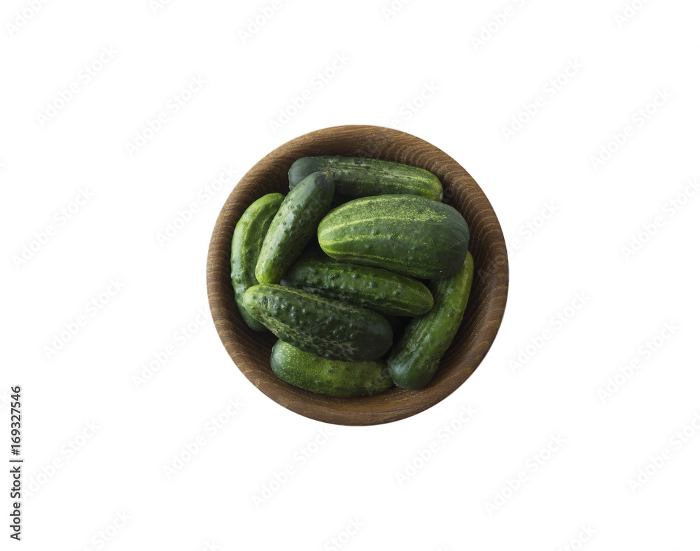 Fresh cucumbers isolated on white background. Top view. Cucumbers with copy space for text.