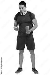 Student mit Handy Smartphone Ganzkörper junger Mann jung Jugendlicher Freisteller