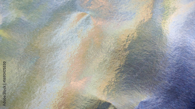 Iridescent silver foil paper texture, abstract festive background with pastel colors
