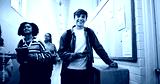 Portrait, education and people in school with technology, walking and classroom allocation in hallway. Smile, learning and students in break with phone, schedule and group for academic success.