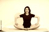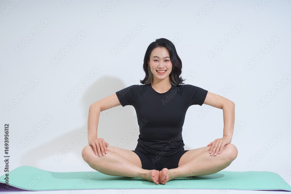 Woman practicing yoga in a comfortable indoor space, focusing on relaxation and mindfulness
