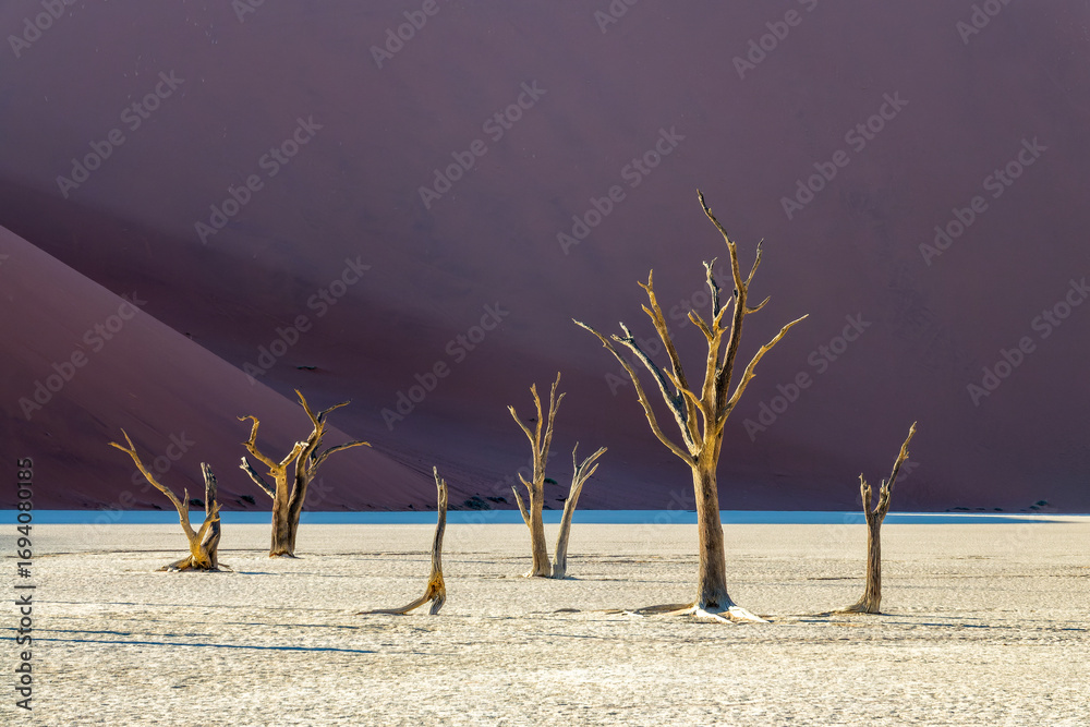 Namibia, Africa. Scenic landscape in Deadvlei (or Dead Vlei) with dead trees and sand dunes in Sossusvlei, Namib Naukluft national park