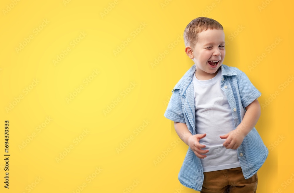Little beautiful child position on background