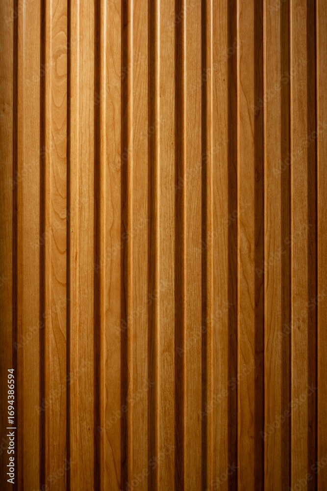 Wooden background banner, brown wooden acoustic panels, seamless pattern wall texture