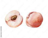 Peach Summer Juicy Ripe Fruit Watercolor hand drawn floral fresh food illustration isolated on white background textile