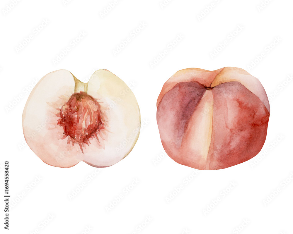 Peach Summer Juicy Ripe Fruit Watercolor hand drawn floral fresh food illustration isolated on white background textile