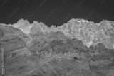Barren cold desert mountain landscape adjacent to Chandrataal lake of Lahaul and Spiti mountain valley located high in rain shadowed region of Himalayas in Himachal Pradesh, India.