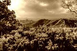 Panoramic aerial view of Aravalli mountain range from Monsoon palace at Sajjangarh, Rajasthan. It is the historic capital of the kingdom of Mewar.