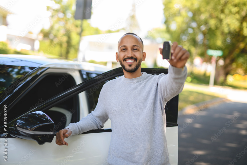 young islamic arab man with his new car