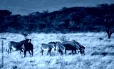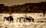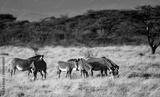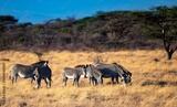 herd of Grevy's Zebra grassing in the Savannah at the Samburu national park in Kenya