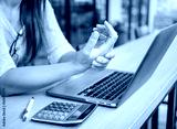 Closeup woman holding her painful hand from using computer. Office syndrome hand pain by occupational disease.
