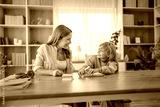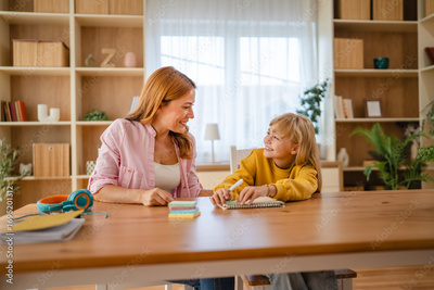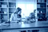 Mother helping daughter with homework at home