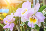 Orchid flower in the garden at winter or spring day for postcard beauty agriculture idea concept design. Cattleya orchid is a genus in the orchid family (Orchidaceae)