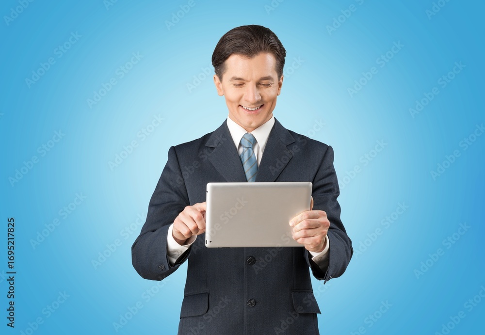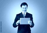Photo of young business person with gadget coworking